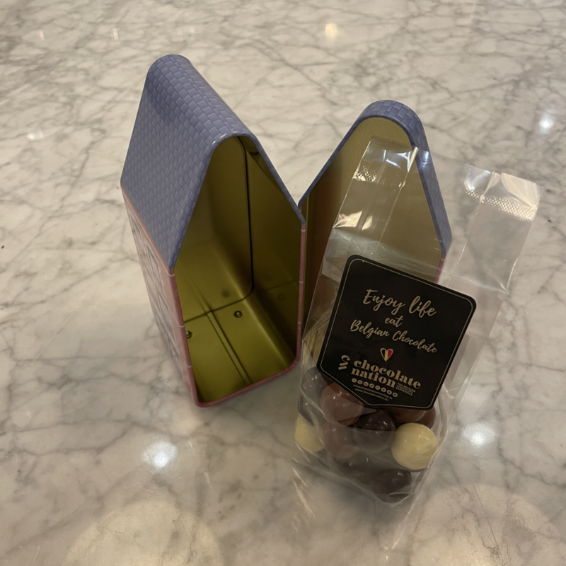 Blikken huisje large - chocolade hazelnoten (uitverkocht)