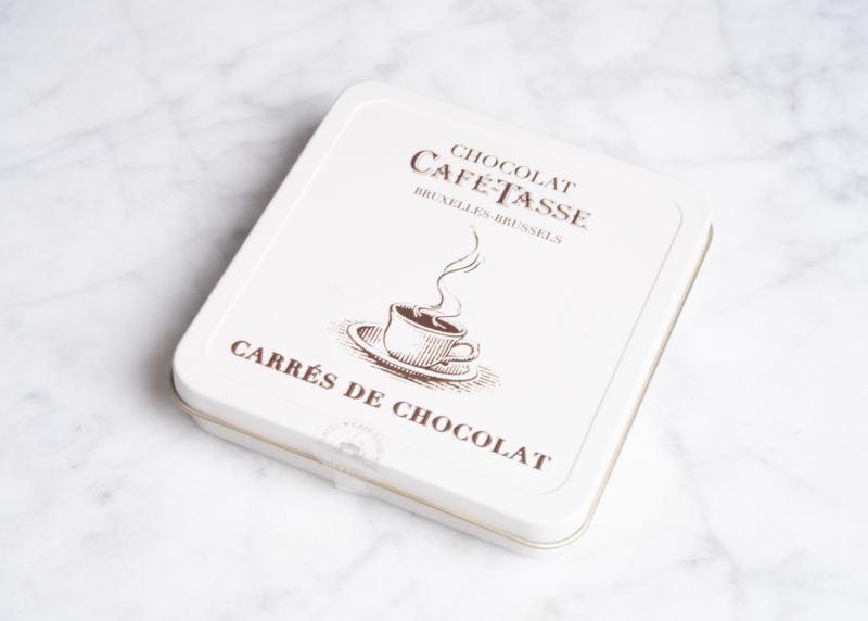Assortiment van 18 verschillende minirepen. 100% Belgische chocolade. 9gr tabletten: - puur 60 % - puur sinaasappel - puur & 'Fleur de Sel' - milk en koko - milk koffie - Wit koffie