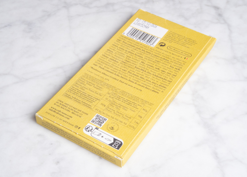 Dark chocolate family bar 60% cacao with Earl Grey tea.